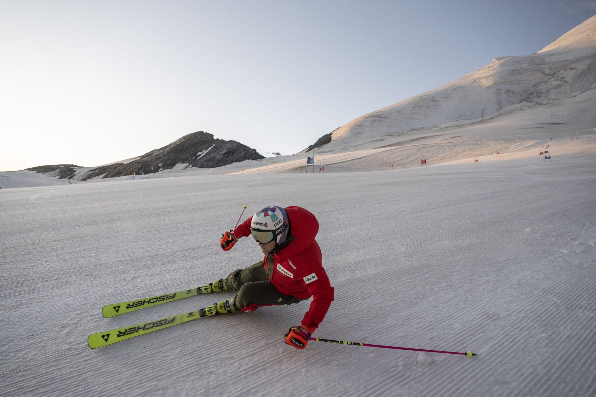 The technology showcases functional and beautiful details born from DESCENTE engineers' meticulous trial and error, such as a three-dimensional sleeve shape optimized for skiing and a gently curved cutting line to protect the back of the hand from cold and contact.