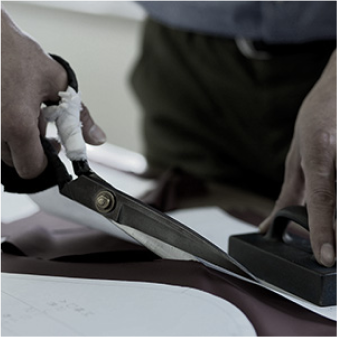 Gran parte della passione per l’artigianalità ruota attorno allo spirito di squadra—come il passaggio di un testimone—e quando il testimone arriva alla fabbrica, il cucito è nelle mani di un gruppo di professionisti altamente qualificati.